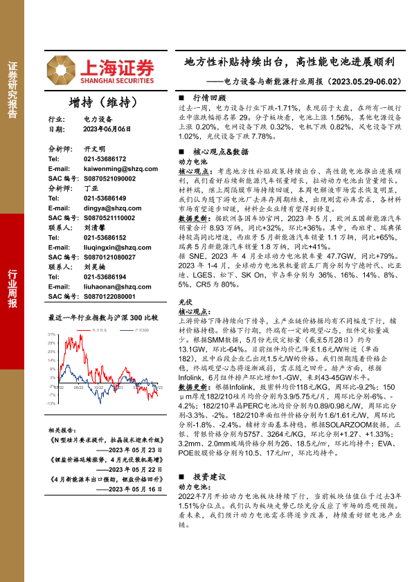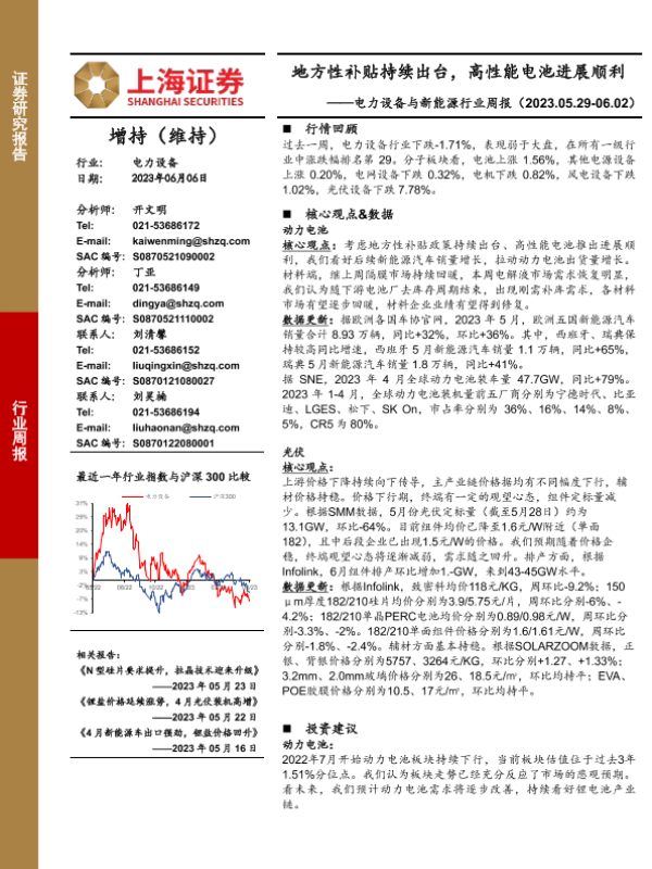 【上海证券】【20230606】电力设备与新能源行业周报:地方性补贴持续出台,高性能电池进展顺利-25页