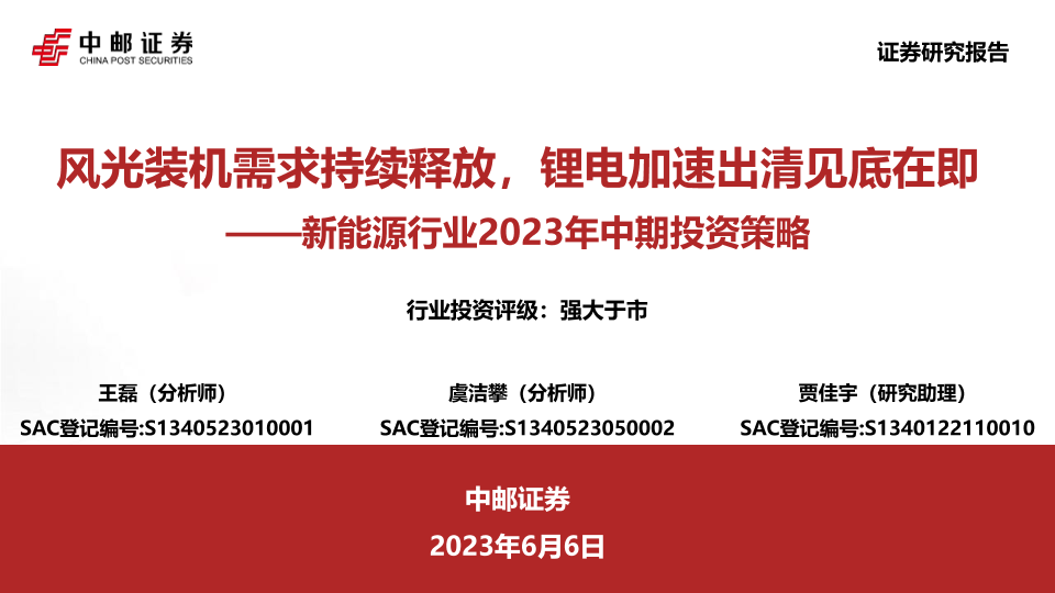 【中邮证券】【20230606】风光装机需求持续释放,锂电加速出清见底在即——新能源行业2023年中期投资策略-44页