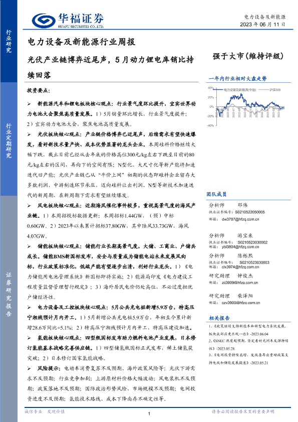 【华福证券】【20230611】电力设备及新能源行业周报:光伏产业链博弈近尾声,5月动力锂电库销比持续回落-14页