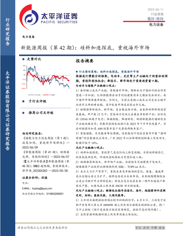 【太平洋证券】【20230611】20230611-太平洋-新能源周报(第42期):硅料加速探底,重视海外市场-34页
