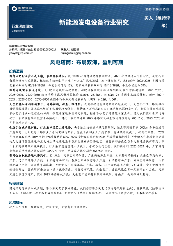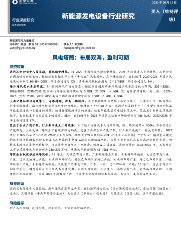 【国金证券】【20230615】20230615-国金证券-新能源发电设备行业研究:风电塔筒:布局双海,盈利可期-21页