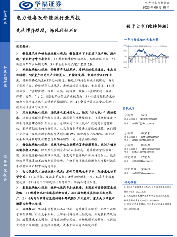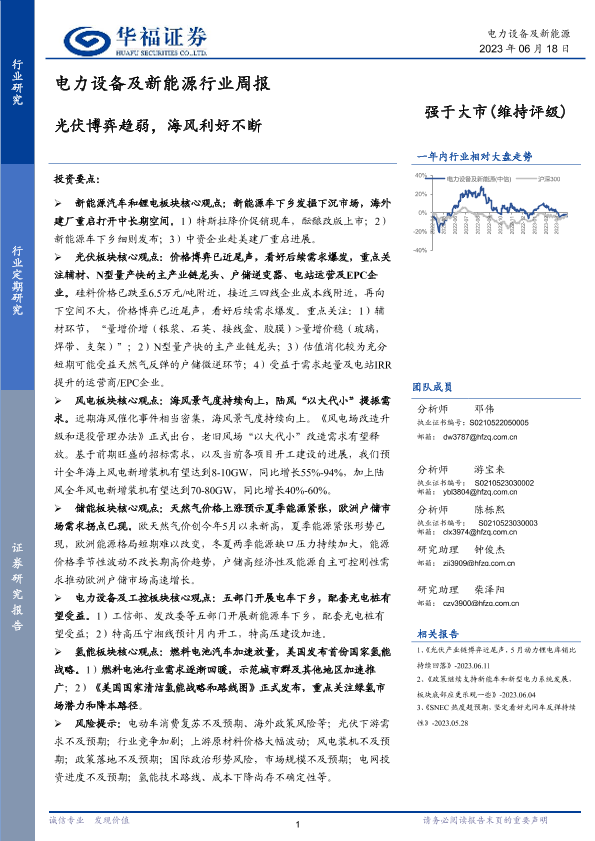 【华福证券】【20230618】电力设备及新能源行业周报:光伏博弈趋弱,海风利好不断-14页