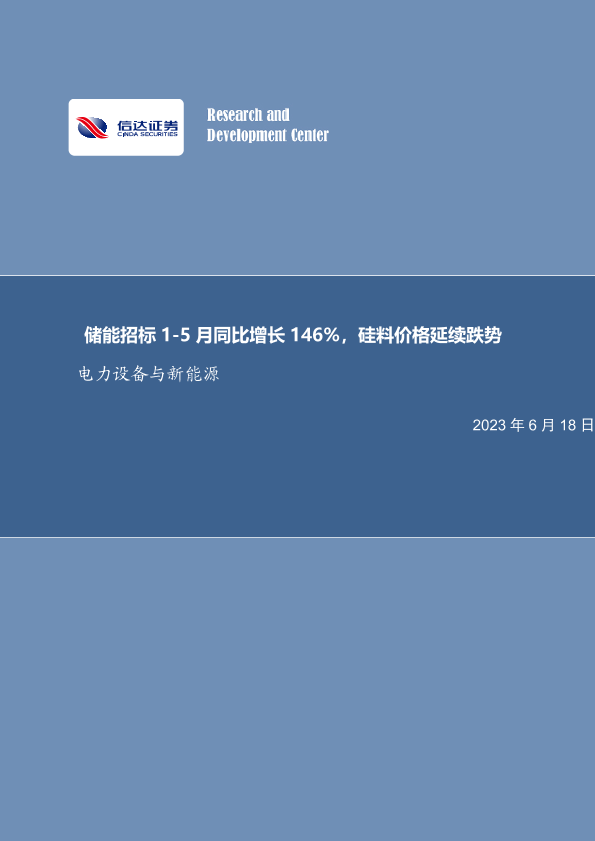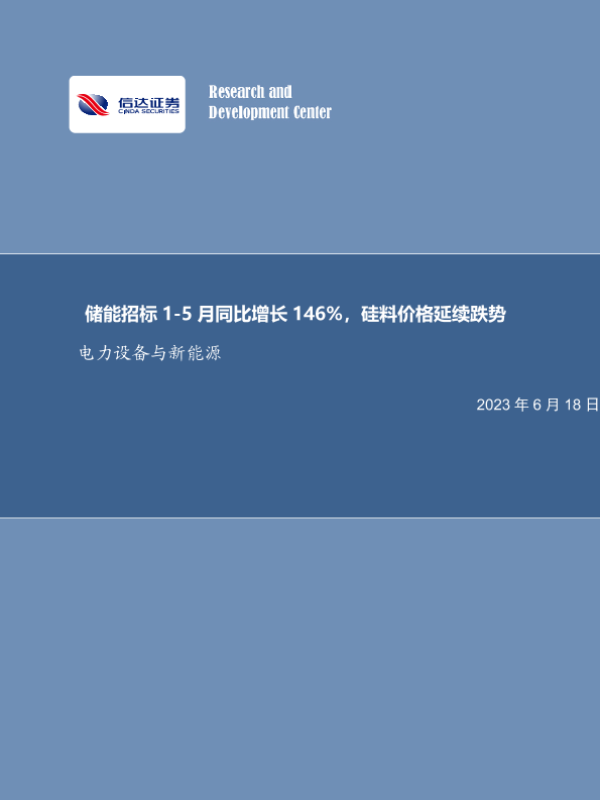 【信达证券】【20230618】电力设备与新能源:储能招标1-5月同比增长146%,硅料价格延续跌势-11页