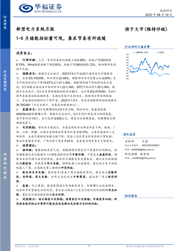 【华福证券】【20230619】新型电力系统月报:1-5月储能招标量可观,集采节奏有所放缓-13页