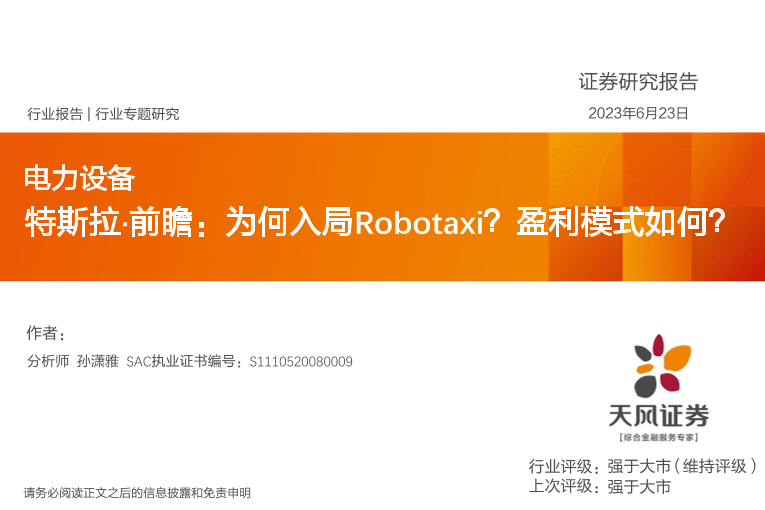 【天风证券】【20230623】特斯拉·前瞻:为何入局Robotaxi?盈利模式如何?-17页