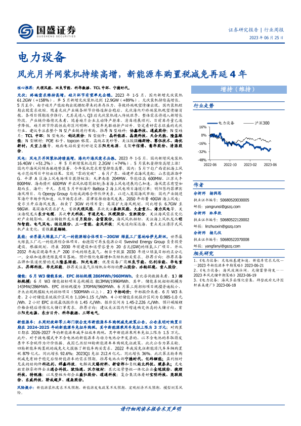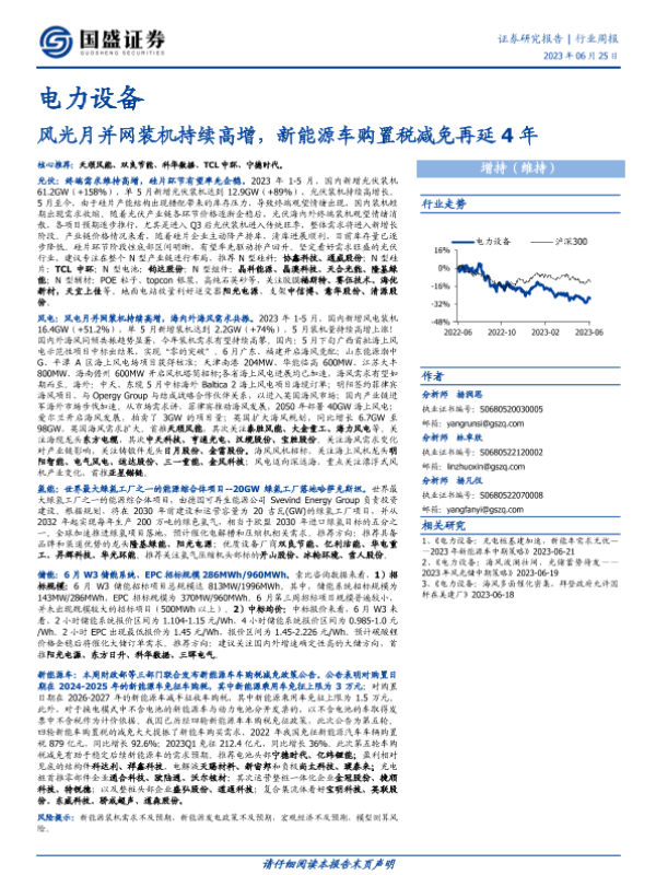 【国盛证券】【20230625】电力设备行业周报:风光月并网装机持续高增,新能源车购置税减免再延4年-18页