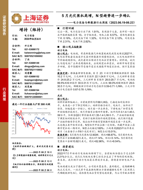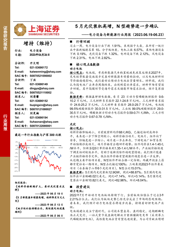 【上海证券】【20230626】20230626-上海证券-电力设备与新能源行业周报:5月光伏装机高增,N型趋势进一步确认-25页
