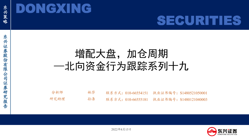 【东兴证券】【20220815】北向资金行为跟踪系列十九:增配大盘,加仓周期-26页