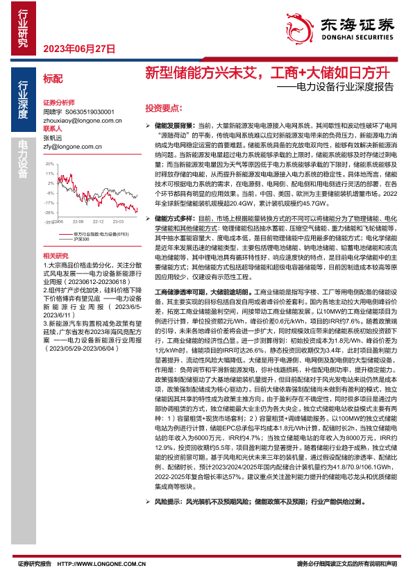 【东海证券】【20230627】20230627-东海证券-电力设备行业深度报告:新型储能方兴未艾,工商+大储如日方升-34页