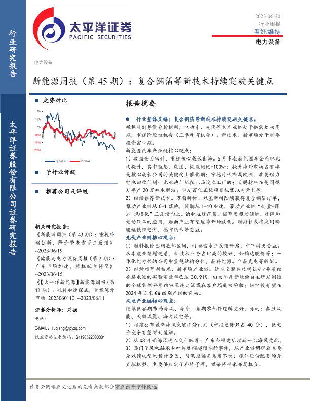 【太平洋证券】【20230630】20230630-太平洋-新能源周报(第45期):复合铜箔等新技术持续突破关键点-38页