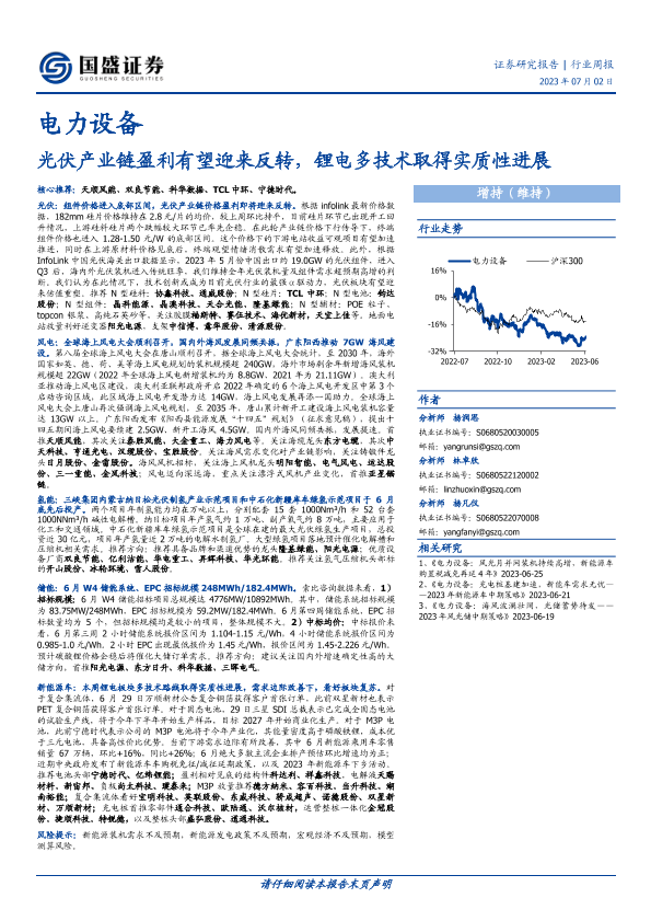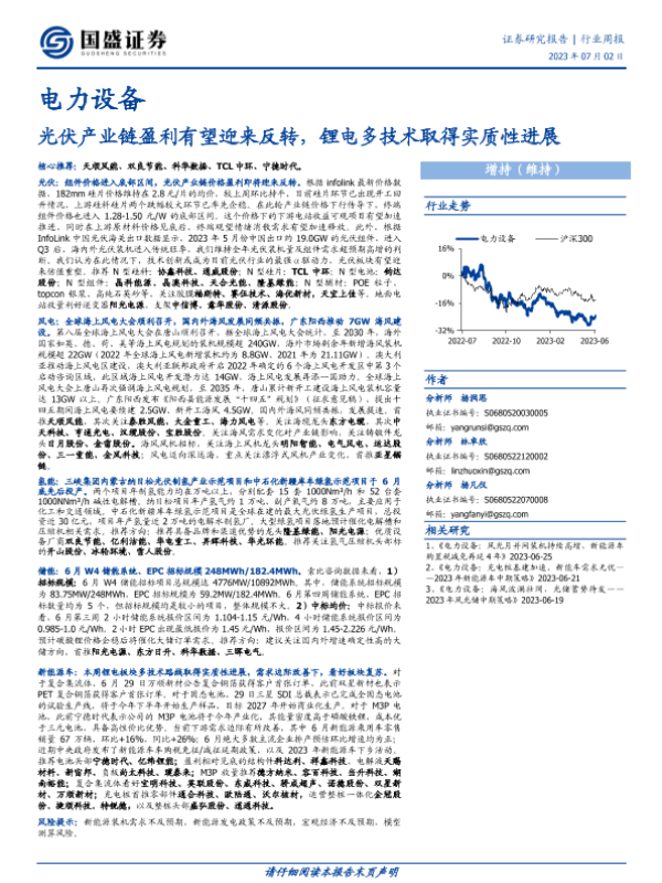 【国盛证券】【20230702】电力设备行业周报:光伏产业链盈利有望迎来反转,锂电多技术取得实质性进展-19页