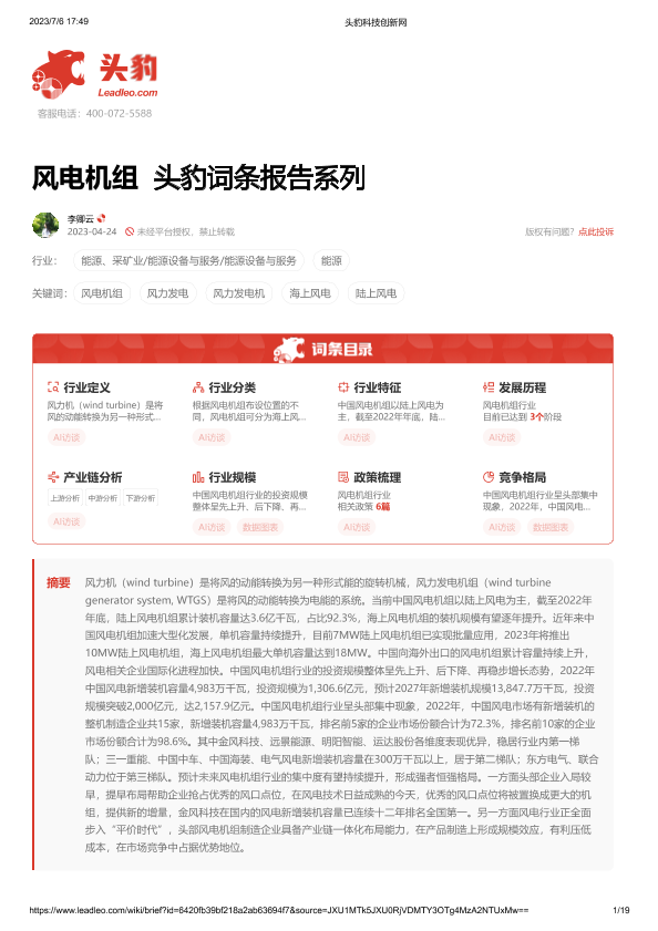 【头豹研究院】【20230706】风电机组 头豹词条报告系列-19页