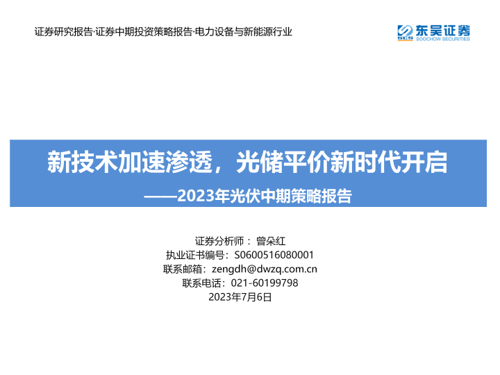 【东吴证券】【20230706】2023年光伏中期策略报告:新技术加速渗透,光储平价新时代开启-122页