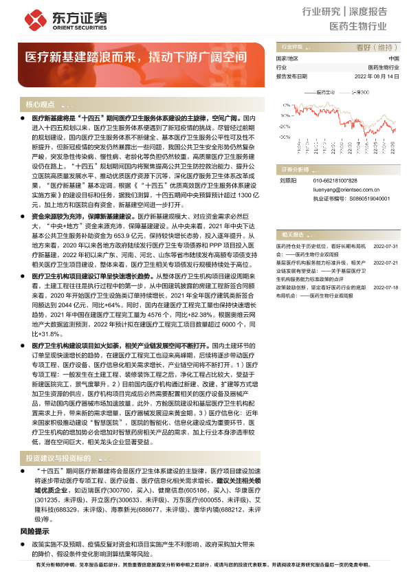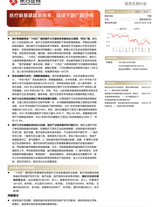【东方证券】【20220814】医药生物行业:医疗新基建踏浪而来,撬动下游广阔空间-27页