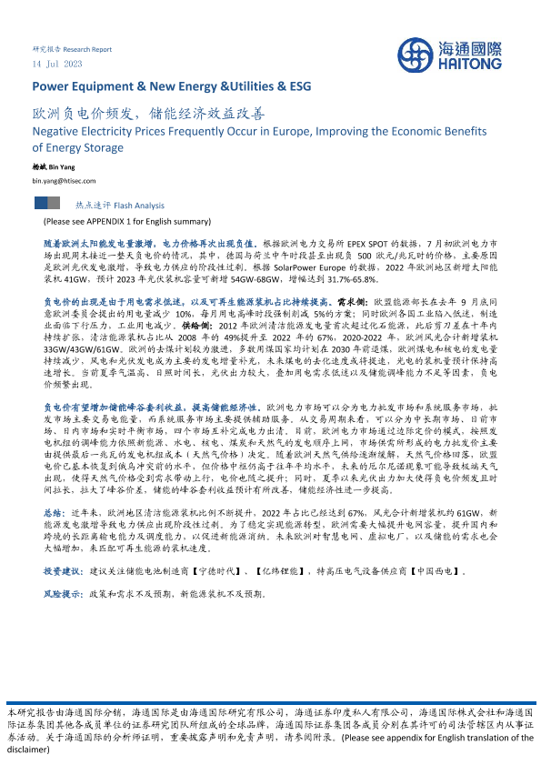 【海通国际】【20230714】欧洲负电价频发,储能经济效益改善-10页