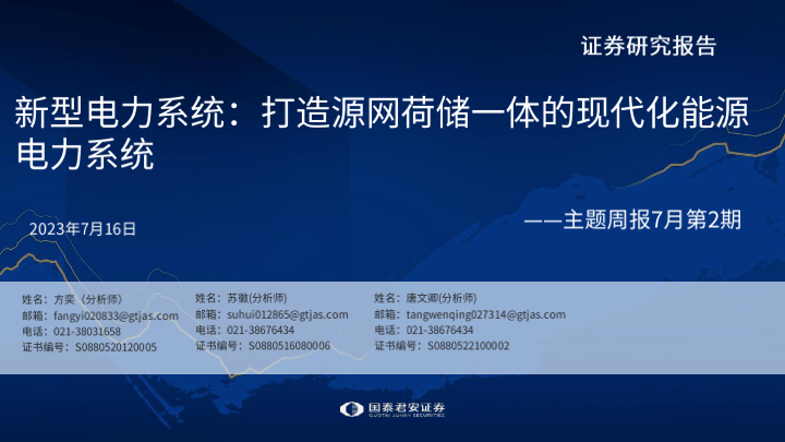【国泰君安证券】【20230716】新型电力系统:打造源网荷储一体的现代化能源电力系统-30页
