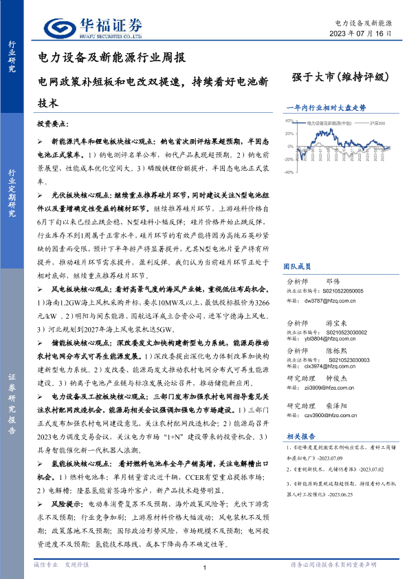 【华福证券】【20230716】电力设备及新能源行业周报:电网政策补短板和电改双提速,持续看好电池新技术-15页