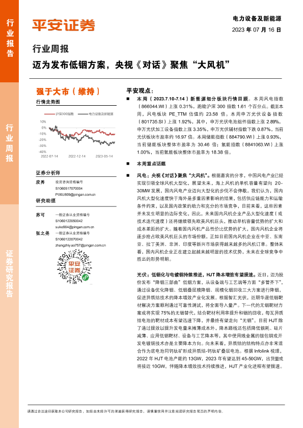 【平安证券】【20230716】电力设备及新能源行业周报:迈为发布低铟方案,央视《对话》聚焦“大风机”-23页