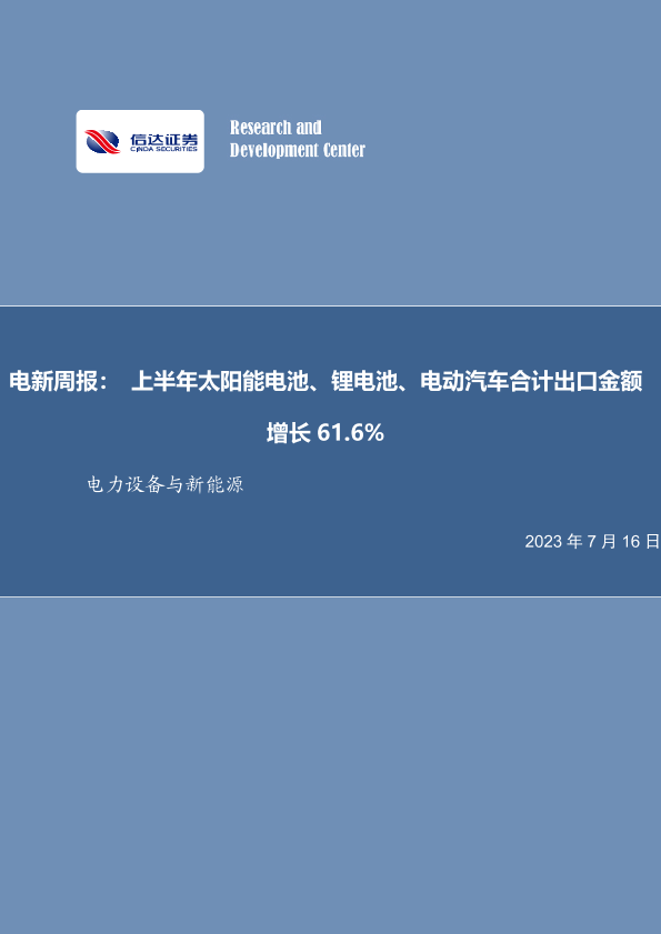 【信达证券】【20230716】电新周报:上半年太阳能电池、锂电池、电动汽车合计出口金额增长61.6%-11页