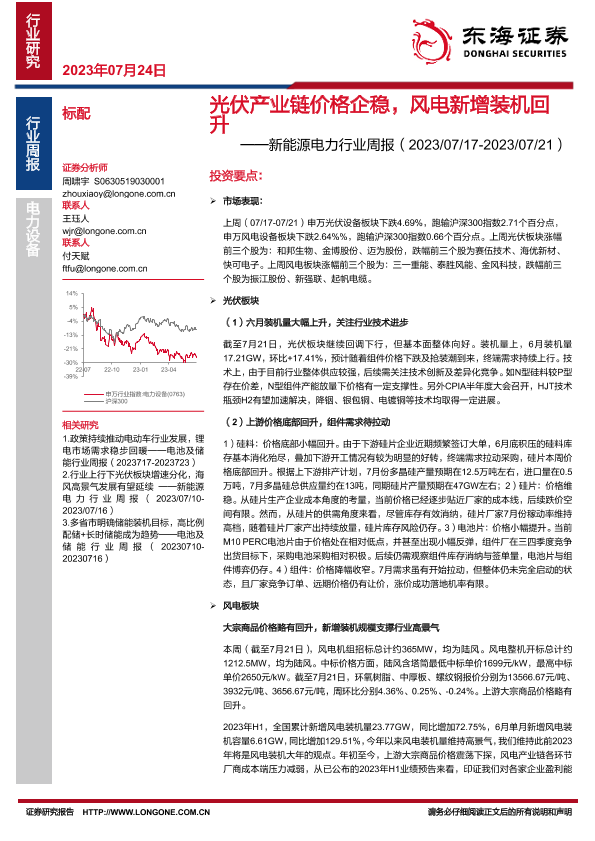 【东海证券】【20230724】20230724-东海证券-新能源电力行业周报:光伏产业链价格企稳,风电新增装机回升-17页