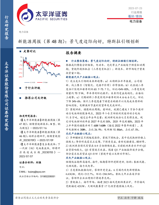 【太平洋证券】【20230723】20230723-太平洋-新能源周报(第48期):景气度边际向好,特斯拉引领创新-37页