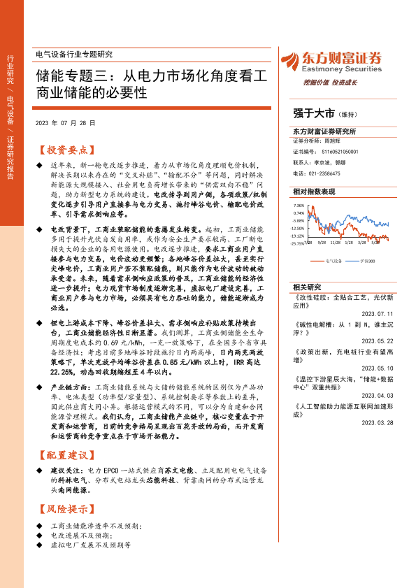 【东方财富证券】【20230728】电气设备行业专题研究:储能专题三:从电力市场化角度看工商业储能的必要性-20页