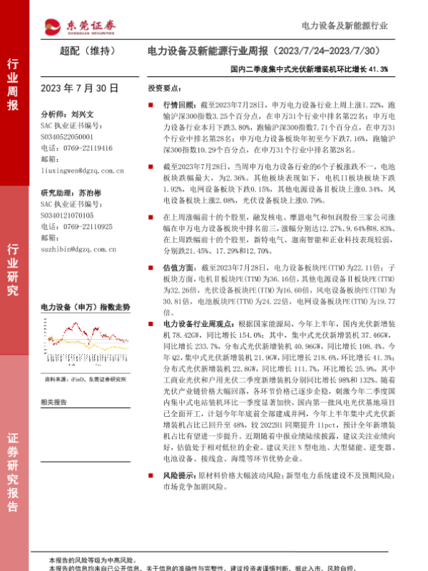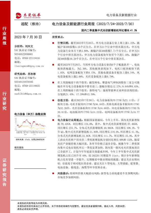 【东莞证券】【20230730】电力设备及新能源行业周报:国内二季度集中式光伏新增装机环比增长41.3%-12页