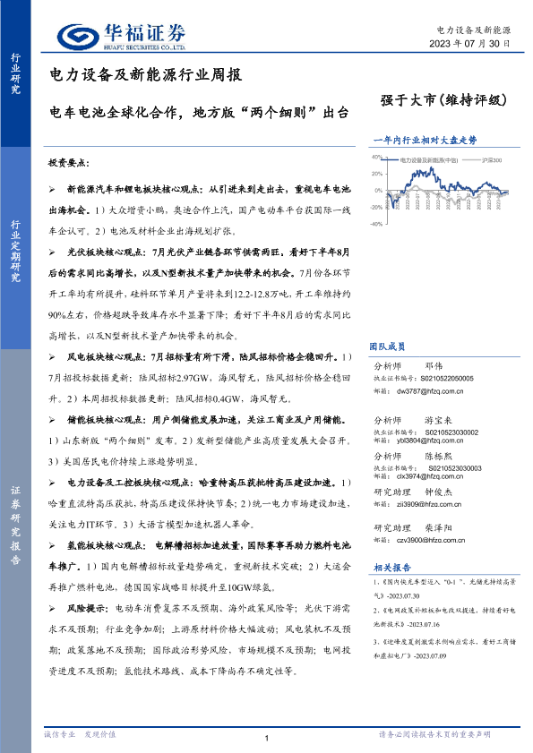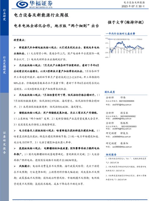 【华福证券】【20230730】电力设备及新能源行业周报:电车电池全球化合作,地方版“两个细则”出台-14页