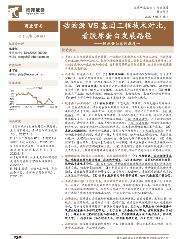 【德邦证券】【20220816】商业贸易行业胶原蛋白系列深度一:动物源VS基因工程技术对比,看胶原蛋白发展路径-31页