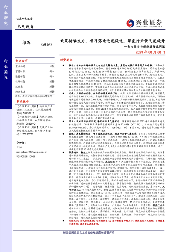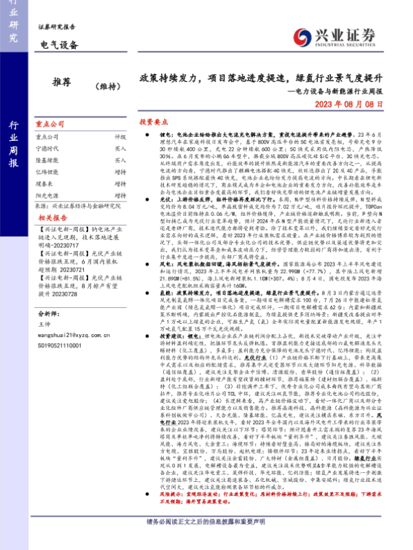 【兴业证券】【20230808】政策持续发力,项目落地进度提速,绿氢行业景气度提升—电力设备与新能源行业周报-19页