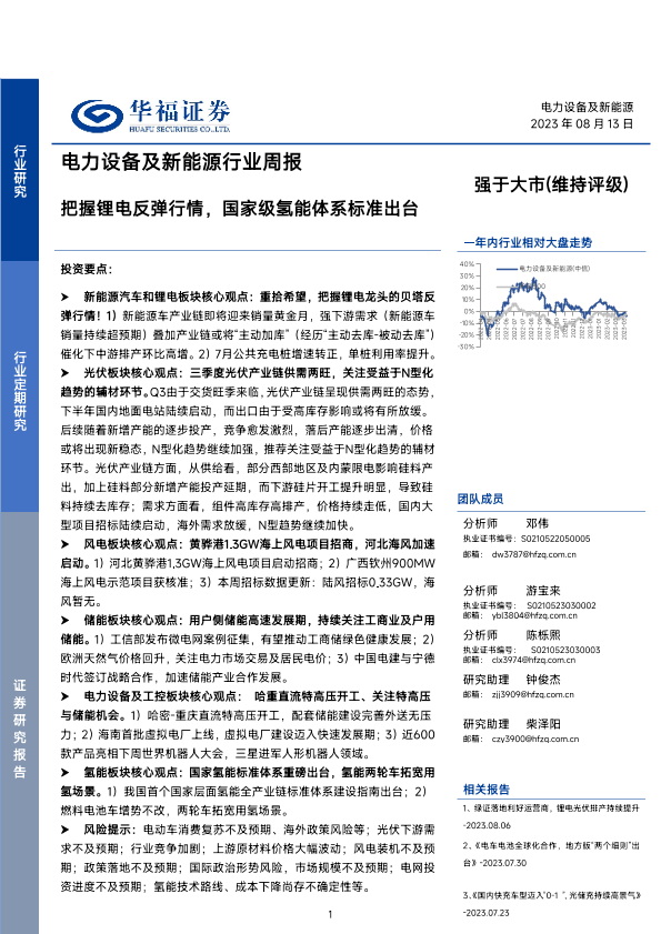 【华福证券】【20230813】20230813-华福证券-电力设备及新能源行业周报:把握锂电反弹行情,国家级氢能体系标准出台-15页