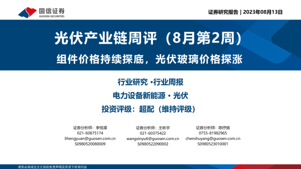 【国信证券】【20230813】光伏产业链周评(8月第2周):组件价格持续探底,光伏玻璃价格探涨-15页