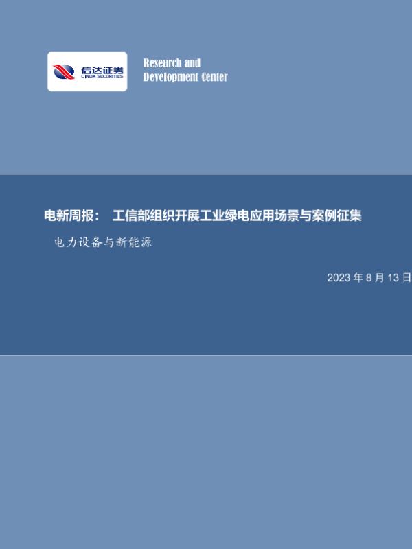 【信达证券】【20230813】电新周报:工信部组织开展工业绿电应用场景与案例征集-10页