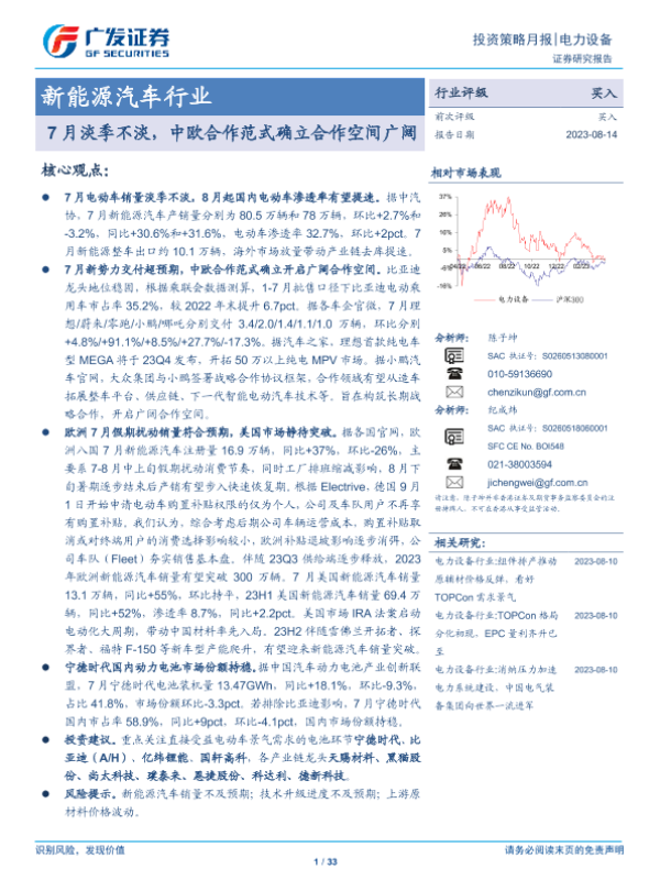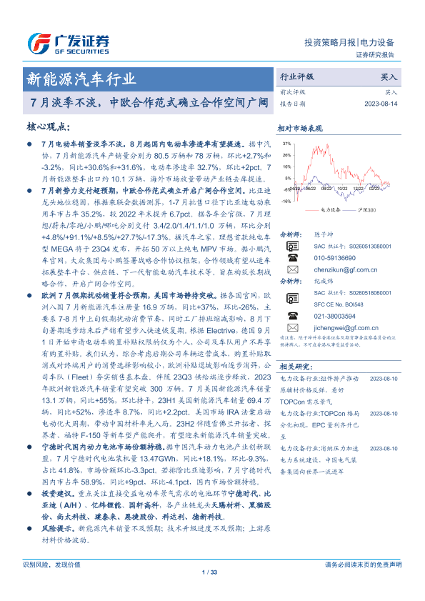 【广发证券】【20230814】20230814-广发证券-新能源汽车行业投资策略月报:7月淡季不淡,中欧合作范式确立合作空间广阔-33页