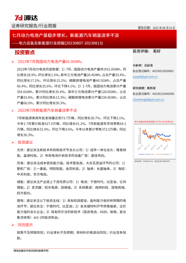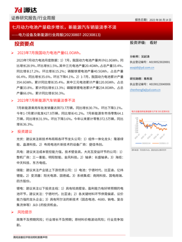【源达信息】【20230814】20230814-源达信息-电力设备及新能源行业周报:七月动力电池产量稳步增长,新能源汽车销量淡季不淡-11页