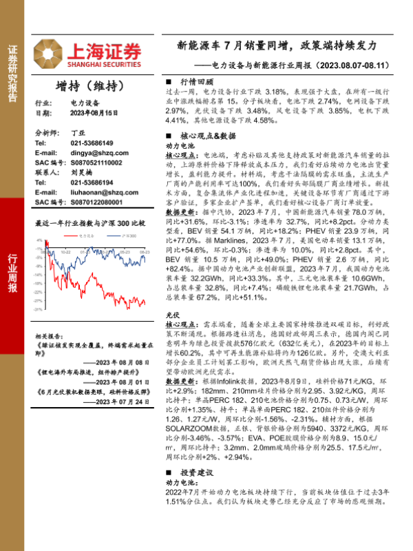 【上海证券】【20230815】电力设备与新能源行业周报:新能源车7月销量同增,政策端持续发力-27页