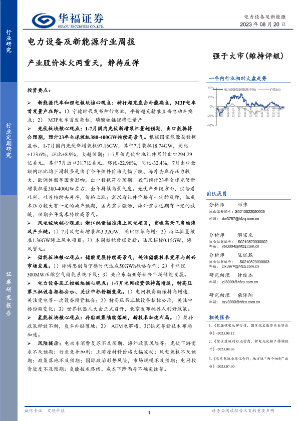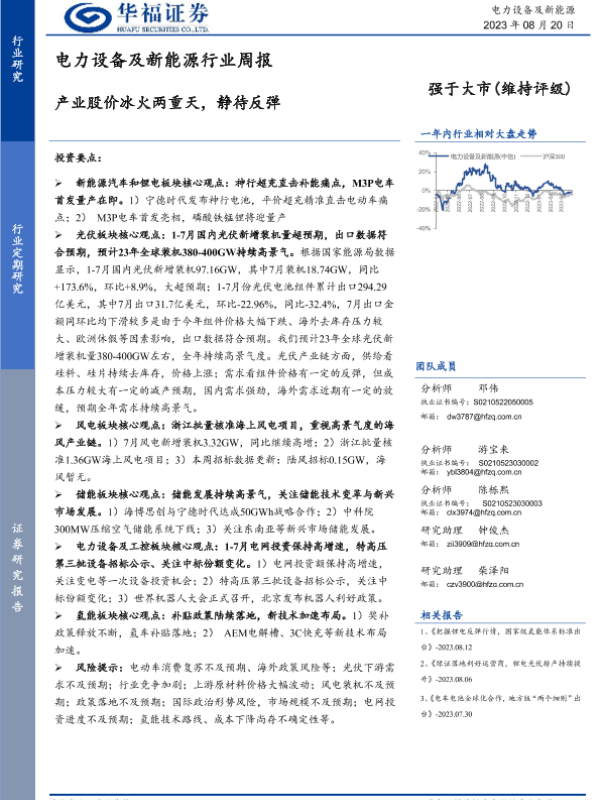 【华福证券】【20230820】电力设备及新能源行业周报:产业股价冰火两重天,静待反弹-13页