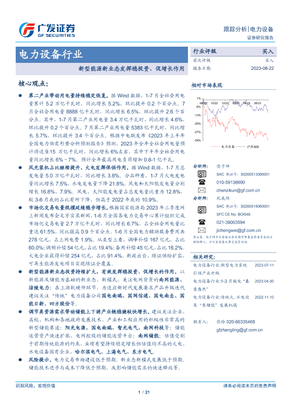 【广发证券】【20230822】电力设备行业跟踪分析:新型能源新业态发挥稳投资、促增长作用-21页