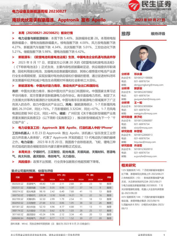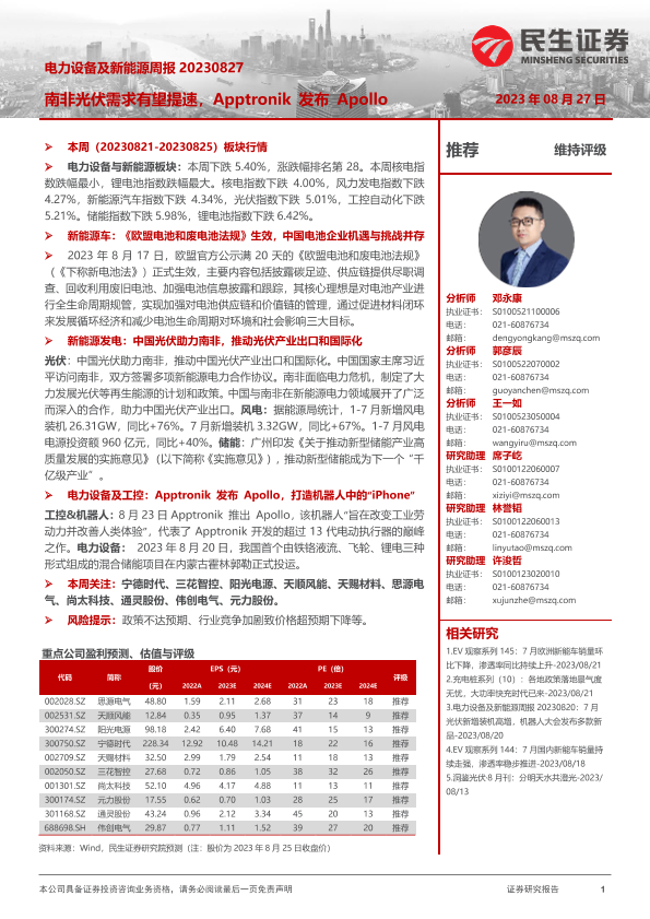 【民生证券】【20230827】电力设备及新能源周报:南非光伏需求有望提速,Apptronik发布Apollo-27页