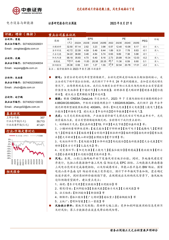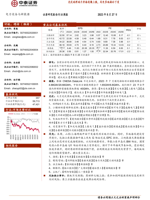【中泰证券】【20230827】电力设备与新能源行业周报:光伏硅料硅片价格连续上涨,风电多地海补下发-25页