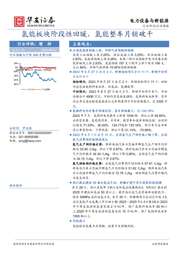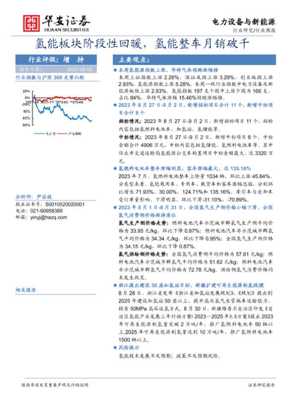 【华安证券】【20230902】电力设备与新能源行业周报:氢能板块阶段性回暖,氢能整车月销破千-15页