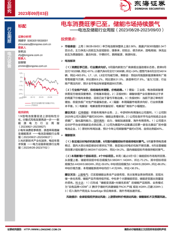 【东海证券】【20230903】电车消费旺季已至,储能市场持续景气-13页
