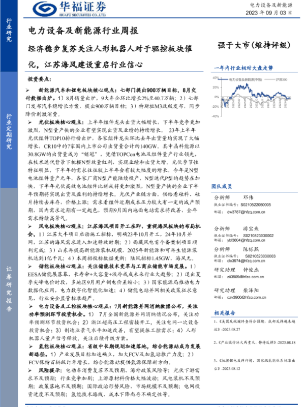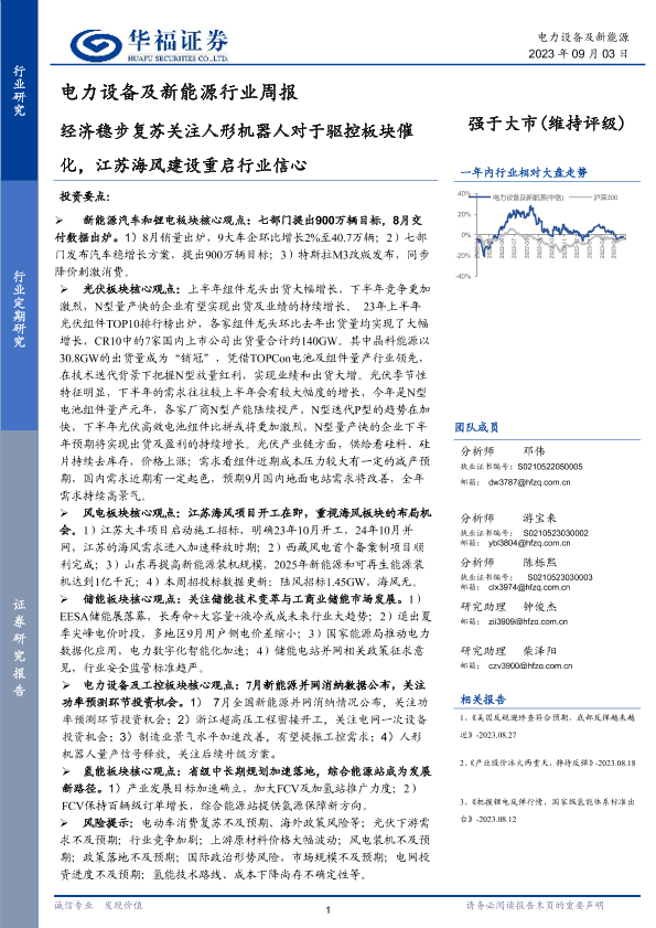 【华福证券】【20230903】电力设备及新能源行业周报:经济稳步复苏关注人形机器人对于驱控板块催化,江苏海风建设重启行业信心-14页