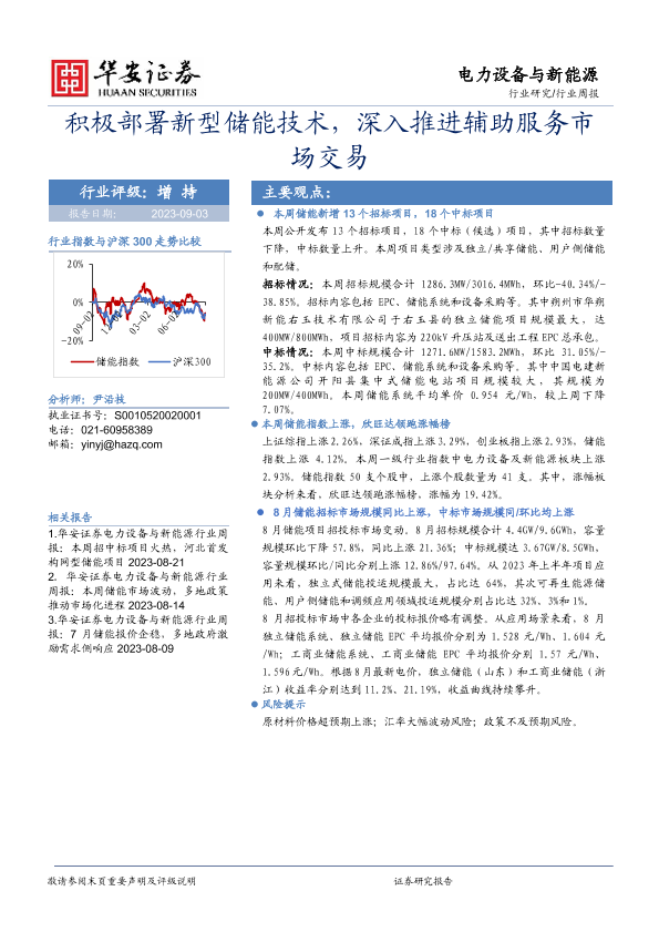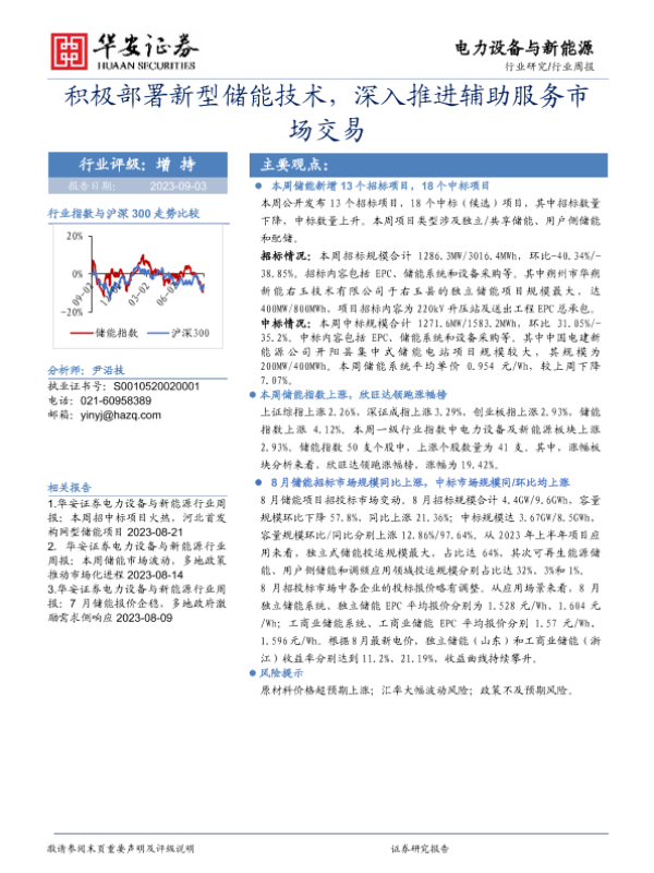 【华安证券】【20230903】20230903-华安证券-电力设备与新能源行业周报:积极部署新型储能技术,深入推进辅助服务市场交易-18页