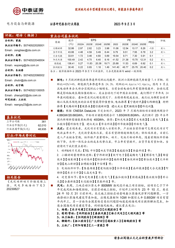 【中泰证券】【20230903】欧洲纯电动车型销量同环比增长,新能源车渗透率提升-30页