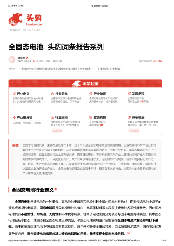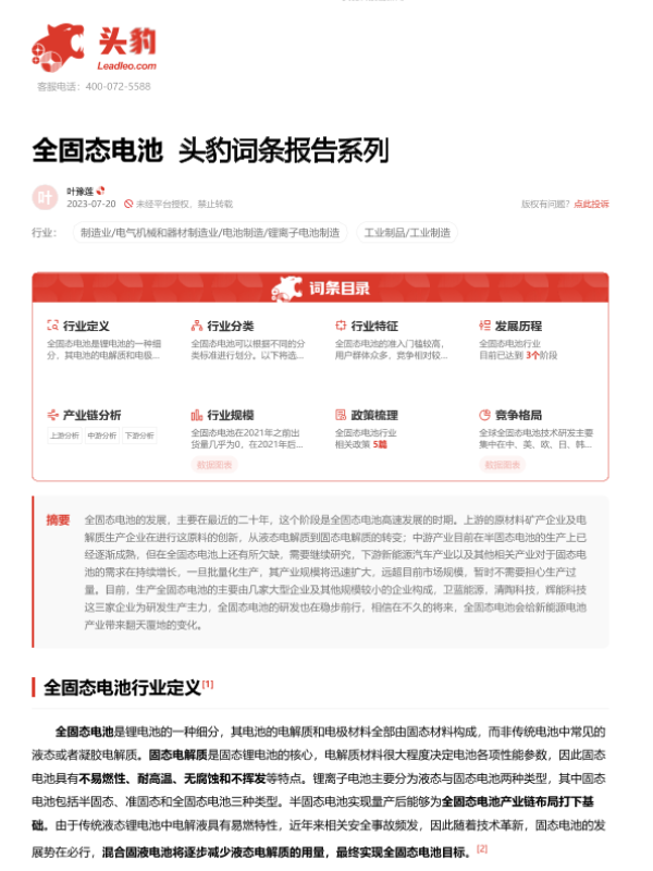 【头豹研究院】【20230720】全固态电池 头豹词条报告系列-18页