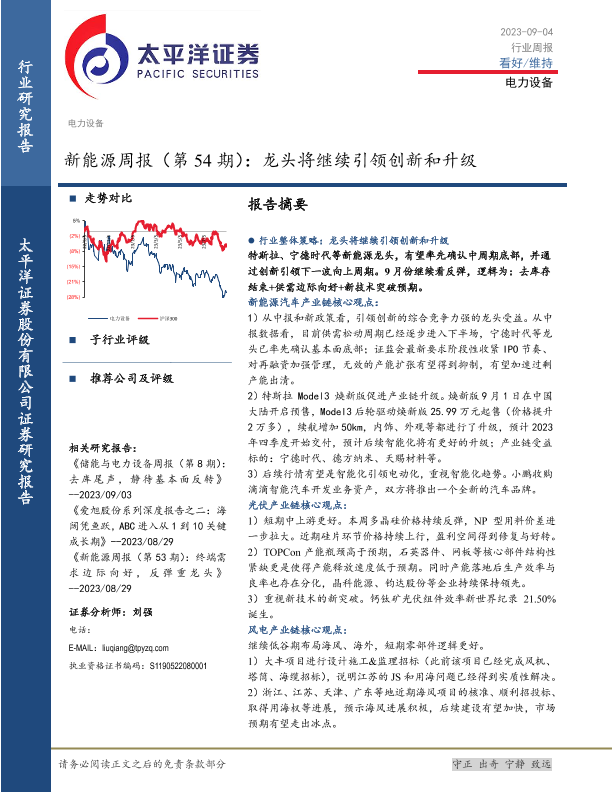 【太平洋证券】【20230904】20230904-太平洋-新能源周报(第54期):龙头将继续引领创新和升级-37页