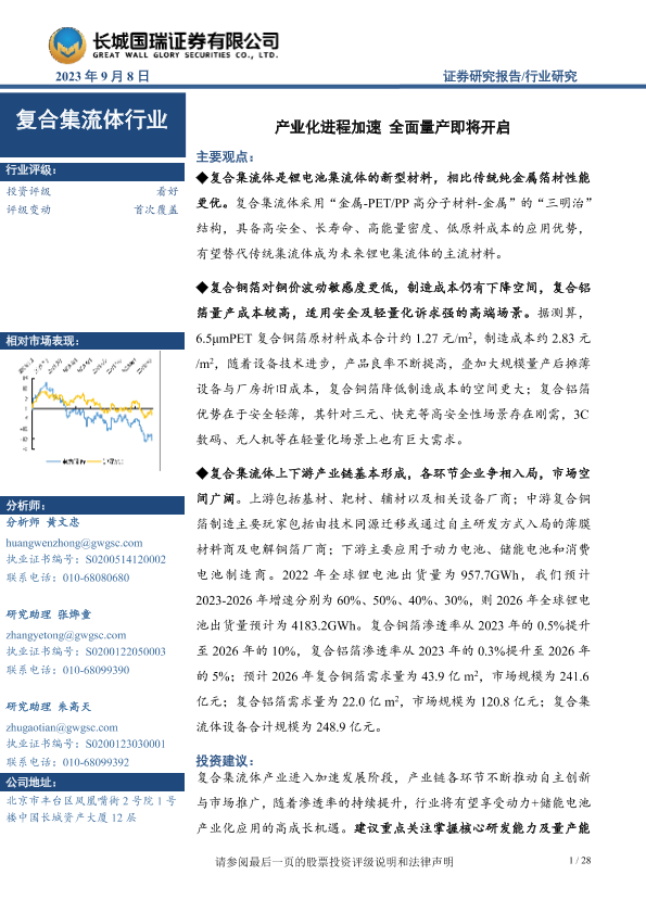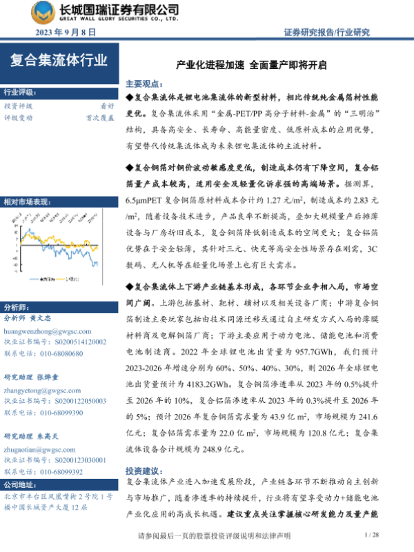 【长城国瑞证券】【20230908】复合集流体行业:产业化进程加速 全面量产即将开启-28页