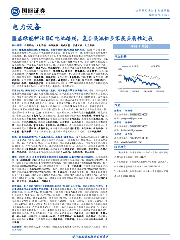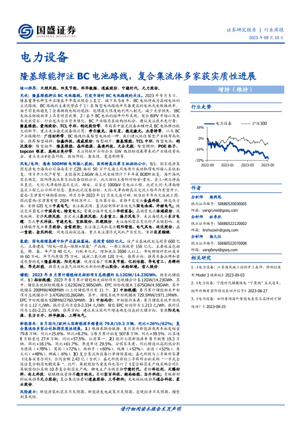 【国盛证券】【20230910】电力设备行业周报:隆基绿能押注BC电池路线,复合集流体多家获实质性进展-19页