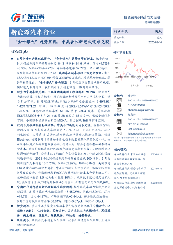 【广发证券】【20230914】20230914-广发证券-新能源汽车行业:“金十银九”趋势显现,中美合作新范式逐步兑现-33页
